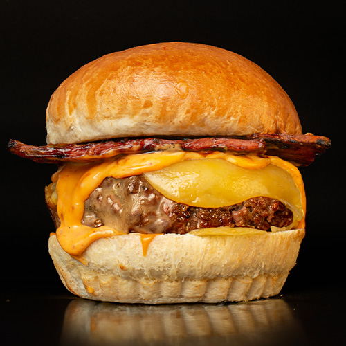 180gr blonda dry aged, queso cheddar ahumado, pico de gallo al mango, bacon bits, salsa mayo / cola top secret, envuelto en pan brioche.