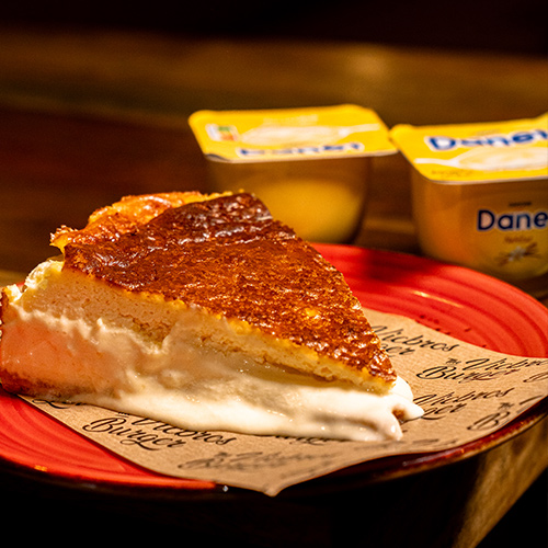Base de queso crema, 180gr de rubia gallega, queso al mango, lingote de FOIE, pinceladas de turrón de Xixona y crocante de almendra garrapiñada